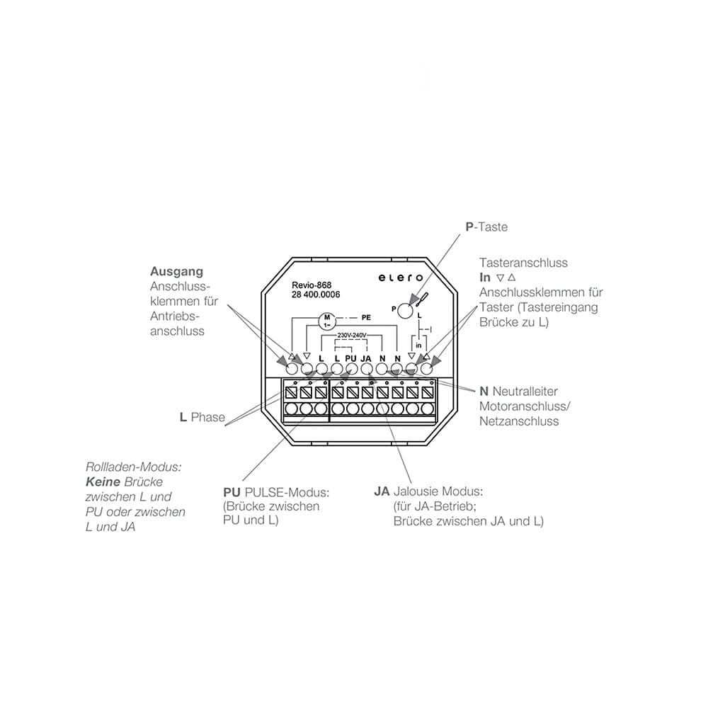• Der Einbaufunkempfänger Revio-868 eignet sich für die Ansteuerung von 230V-Antrieben
