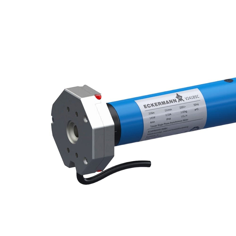 PORTOS and PORTOS-R series drives are single-phase, asynchronous electric motors controlled by 230V 50 Hz voltage. They are equipped with the so-called mechanical limit switching, which means that the positions in which the motor installed in the roller shutter stops are determined manually (with an adjustment key) at the drive head. The motors are suitable for an octagonal tube with the diameter of 40, 60 and 70 mm.