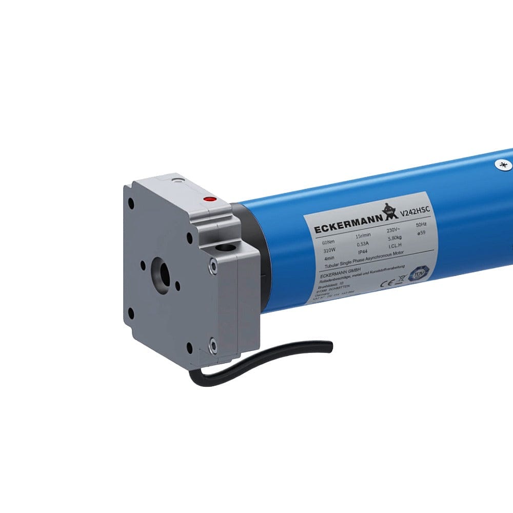 PORTOS and PORTOS-R series drives are single-phase, asynchronous electric motors controlled by 230V 50 Hz voltage. They are equipped with the so-called mechanical limit switching, which means that the positions in which the motor installed in the roller shutter stops are determined manually (with an adjustment key) at the drive head. The motors are suitable for an octagonal tube with the diameter of 40, 60 and 70 mm.